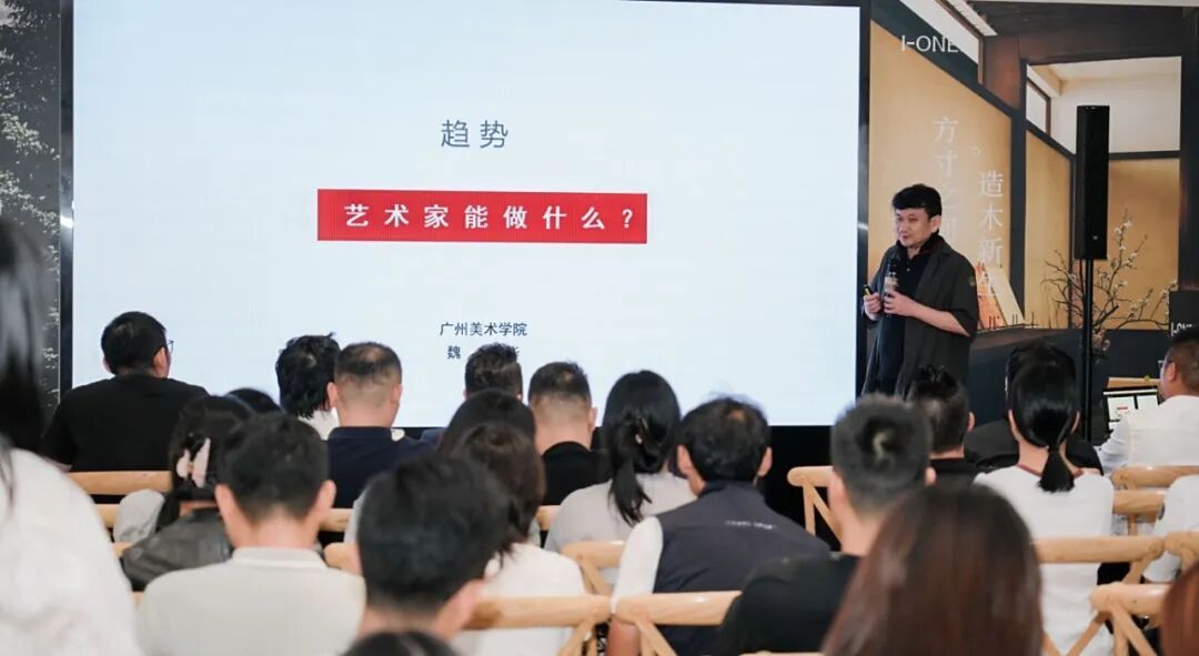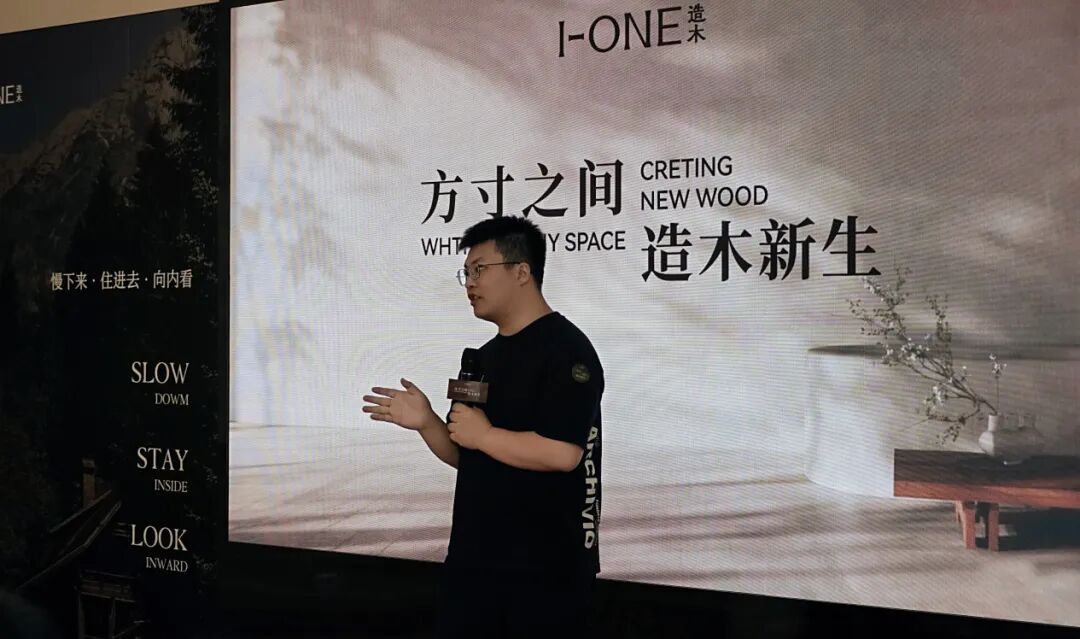 本次发布会邀请阿志茶空间设计工作室 创始人/主创设计师 周进志老师分享,阿志老师把荒废老宅改造的【茶空间】作品,在网上超4000万的爆光量,同时吸引超10万游客打卡; “以木为魂,构建东方生活场域” 的实践,恰与 I-ONE 造木 “以木为魂,传递东方生活美学” 的主张深度契合;不仅验证 “木作 + 东方美学” 的市场吸引力,更让品牌 “传递东方生活美学” 的主张有可感知、可落地的参照,助力 I-ONE 在产品场景化表达上更具方向感。