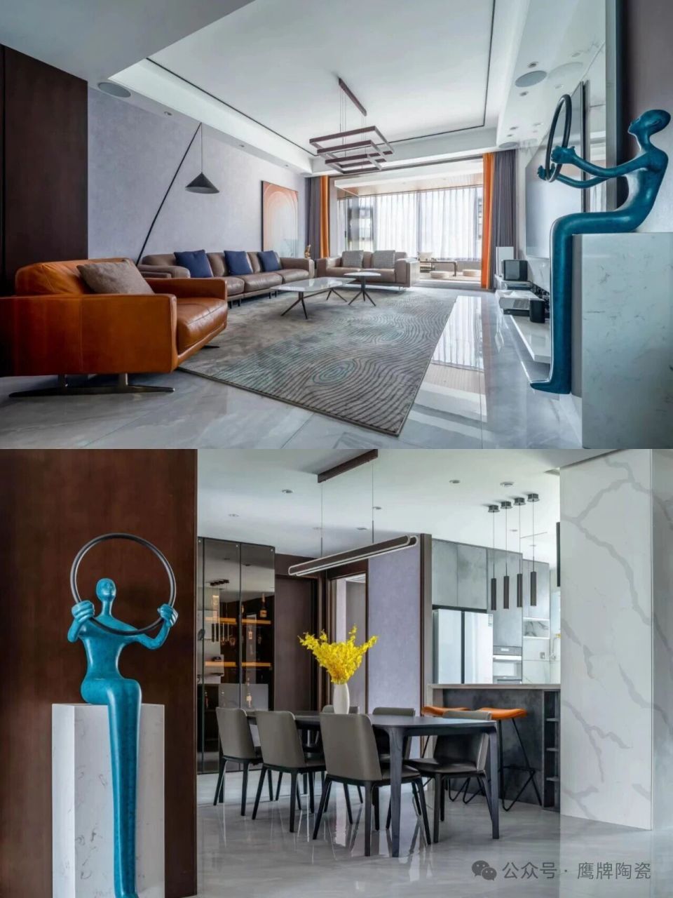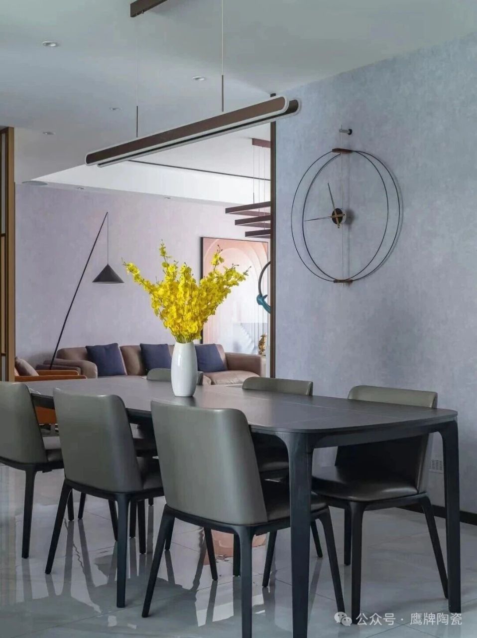 本期业主是对生活品质要求很高的一对年轻人,考虑到采光需求以及业主对产品纹理流畅动态感的喜爱,此次140m²极简风新居全屋通铺 鹰牌陶瓷鲸MAX系列-银龙灰-K8GF11DE,完美诠释“低调的奢华”