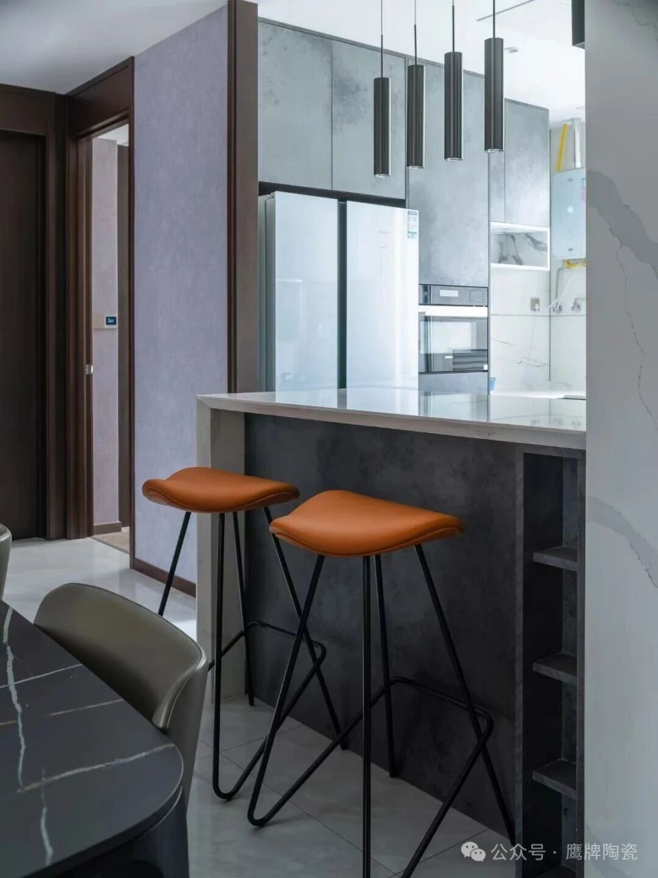 全屋地砖选用银龙灰-K8GF11DE,天然大理石纹理,结合开放式布局,不仅大大提升了空间的质感,还让整个家看起来更加通透明亮,每一步都像是在艺术画廊中漫游,松弛而有格调